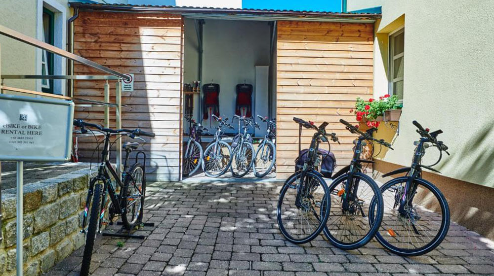 Außerdem haben Sie die Möglichkeit, moderne E-Bikes und Fahrräder inklusive Ausstattung direkt bei uns zu mieten.