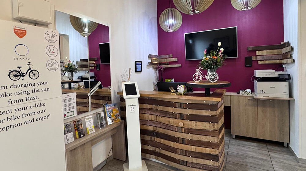 Dank unserer Photovoltaikanlage laden unsere E-Bikes mit der Sonne von Rust, und auch unsere Pension wird zu 100 % mit diesem nachhaltigen Strom versorgt. So verbinden wir Umweltbewusstsein mit maximalem Komfort für unsere Gäste.